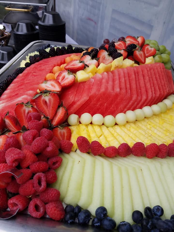 Check out a few photos of a some of the delicious eats from the catering menu . Chef Wells was served up our famous smoked salmon cornets and of course there was a beautiful fresh fruit display and sliced meat edible art display.